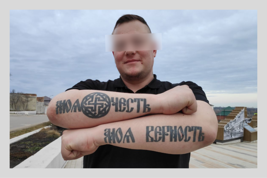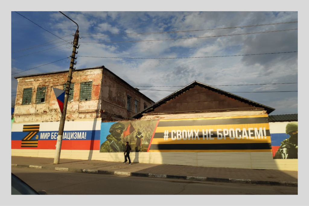 В апрельские выходные город выглядит безлюдным. Единственные, кого корреспондент «Вёрстки» встретил в воскресенье вечером на Красной площади, — трое подвыпивших мужчин. Через минуту знакомства горожане хвастались, что они якобы бойцы ЧВК «Вагнер» на побывке. Парень, который назвался Бесом, с удовольствием показывал свои татуировки: «Это такой славянско-скандинавский инь-янь», — комментировал он изображения рун на шее. На его предплечьях — надпись «Моя честь — это верность» и свастика. Под песни Тимура Муцураева мужчины рассказывали истории о своих судимостях, о пытках пленных советским кипятильником, о подрывах на мине-«лягушке», об оторванных ногах сослуживцев и о погибших товарищах, которых, по словам Беса, уже «больше, чем друзей во „ВКонтакте“». Рядом с Красной площадью — храм, куда вагнеровцы, по их словам, днём ходили ставить свечки в память о погибших. Сказали, что после этого на душе стало легче.