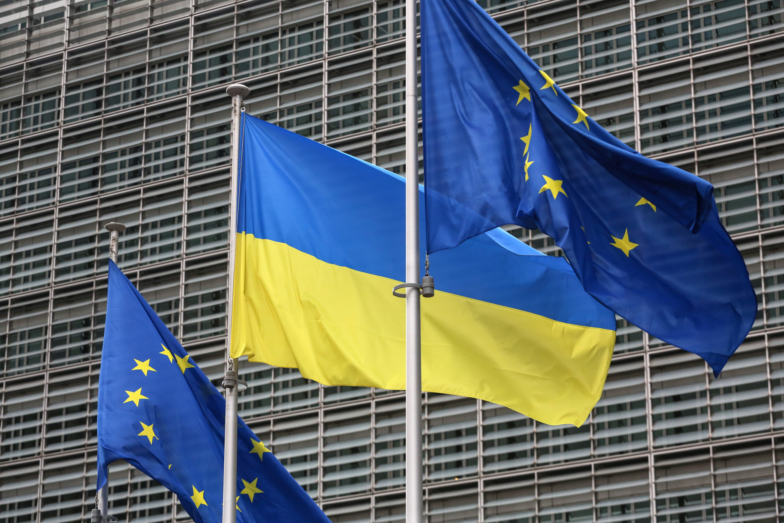 Фото: Флаги Евросоюза и Украины перед зданием Еврокомиссии в Брюсселе. Valeria Mongelli / Hans Lucas via Reuters