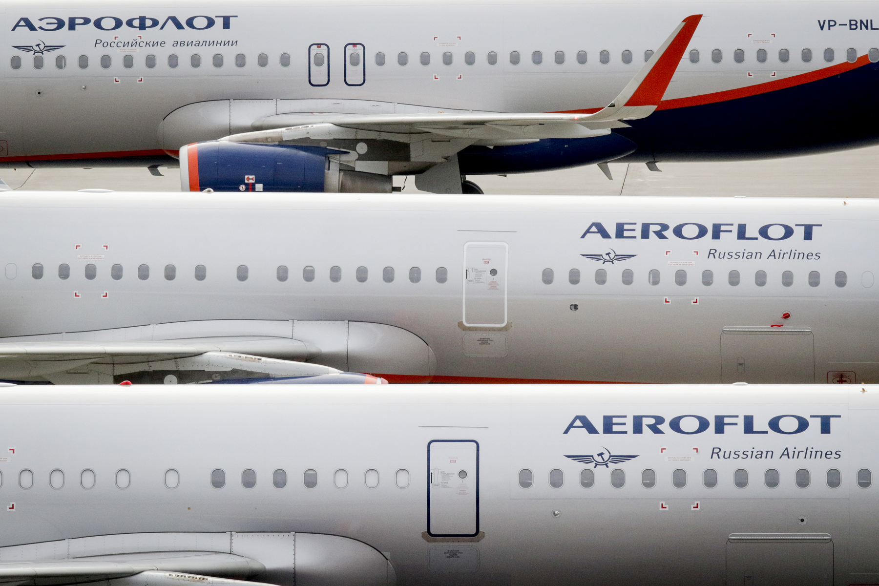 Фото: Пассажирские самолёты Airbus A320 авиакомпании «Аэрофлот» в московском аэропорту Шереметьево, 16 сентября 2021 года. Leonid Faerberg / SOPA Images/Sipa USA