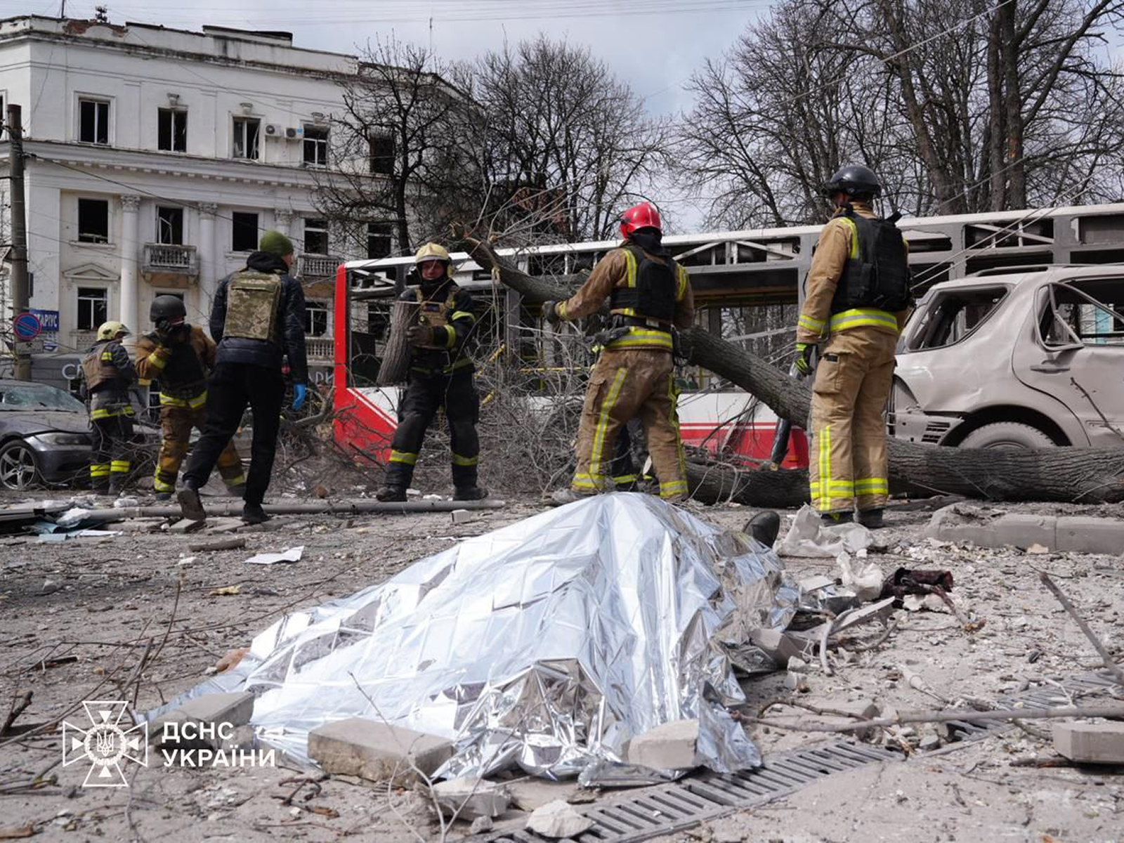 Фото: Последствия российского удара по Сумам, 13 апреля 2025 года. Державна служба України з надзвичайних ситуацій