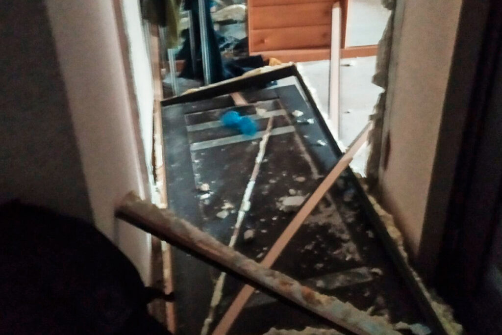 Взрывной волной в доме выбило подъездную дверь. В квартире у супругов Кобенко вылетели все стёкла и межкомнатные двери. Уцелела только одна — ведущая в туалет.