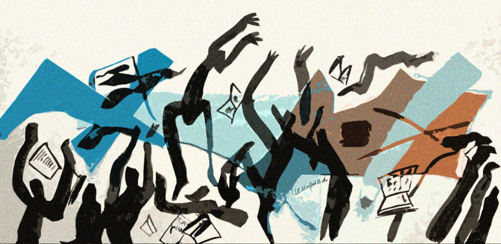 —Конечно. Только мы это поняли задним числом. Ситуация вокруг «Мемориала» ухудшалась постепенно, и мы не думали, что будет сразу ликвидация. Не ожидали, что нас стремительно накроет цунами. Правда, незадолго до этого было событие, которое все-таки отличалось от прежних скандалов и наездов. Это была подстроенное с помощью НТВ нападение, когда в октябре 2021 во время показа в «Мемориале» фильма «Голод» Агнешки Холланд в наш зал ворвались не нодовские фрики, а сорок молодых людей в черном и со скрытыми лицами. Сразу возникла ассоциация с 1933 годом в Германии, когда во время спектаклей врывались отряды штурмовиков и устраивали погром. Вот мы смотрим этот фильм, стоят на улице НТВ-шники, которые сначала снимали тех, кто шел на просмотр, а потом, как стало ясно, поджидали этих молодчиков. И кто-то из них, вероятно, заранее под видом зрителя проник в зал и открыл им другой вход. И тогда прямо на сцену ворвались эти бойцы, загородили собой экран и стали скандировать: «Руки за голову! Морды в пол!».