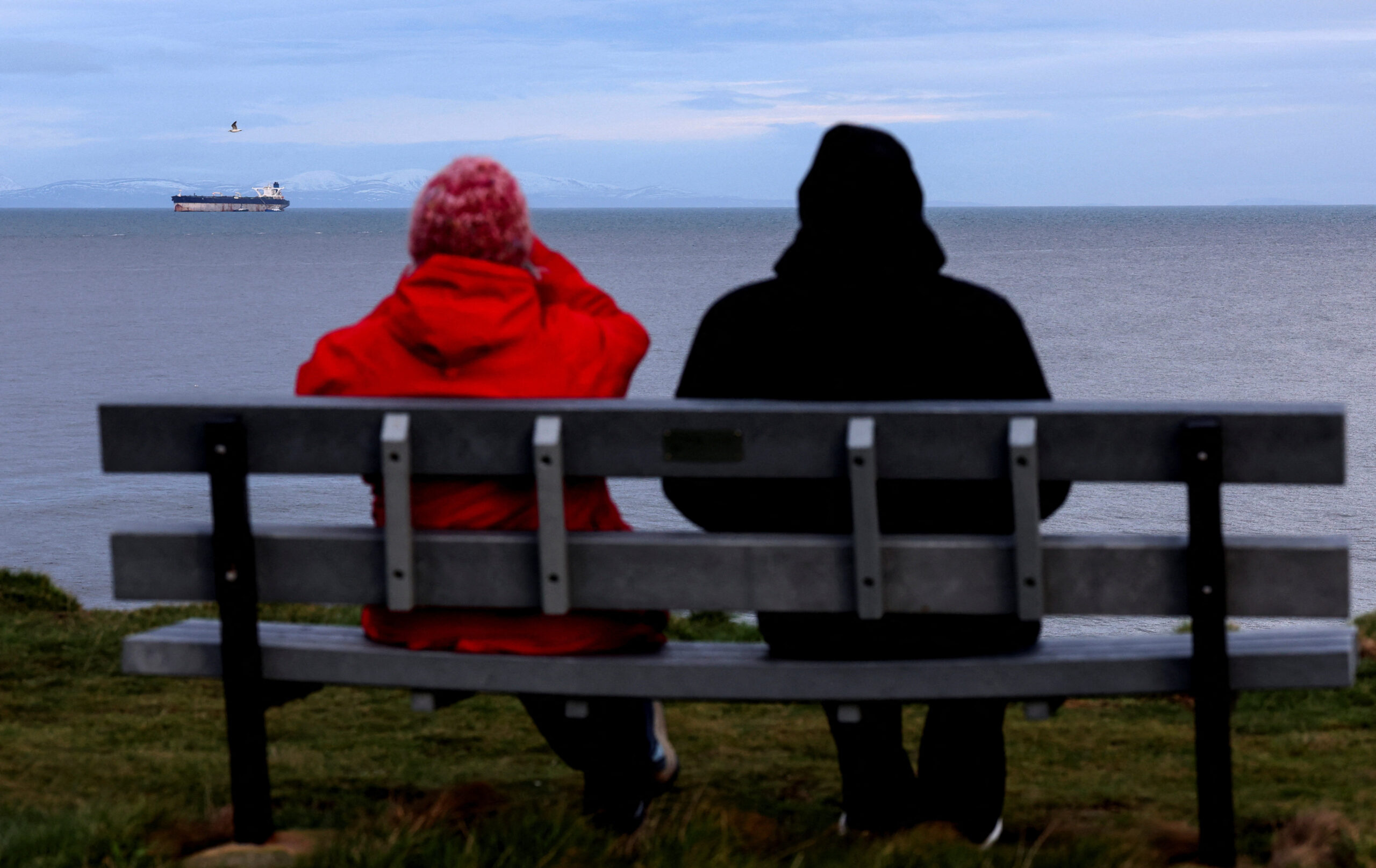 Фото: Шотландцы смотрят на нефтяной танкер Marinera, захваченный береговой охраной США. REUTERS/Russell Cheyne