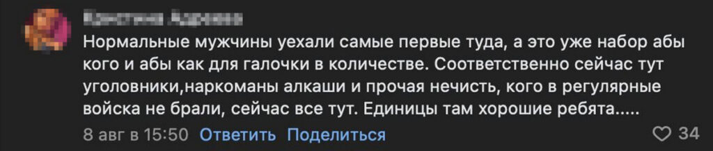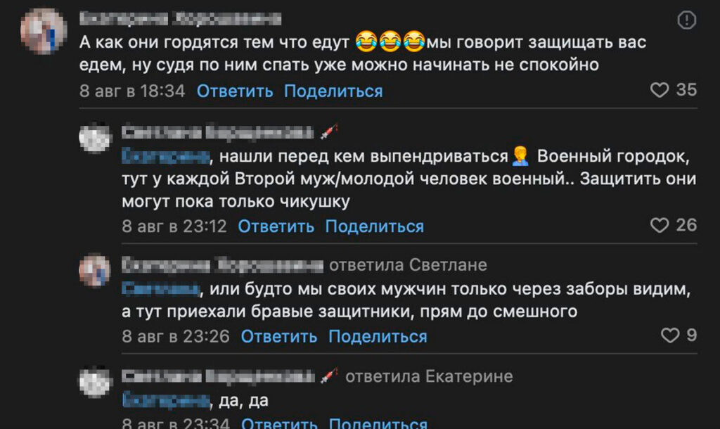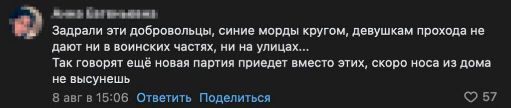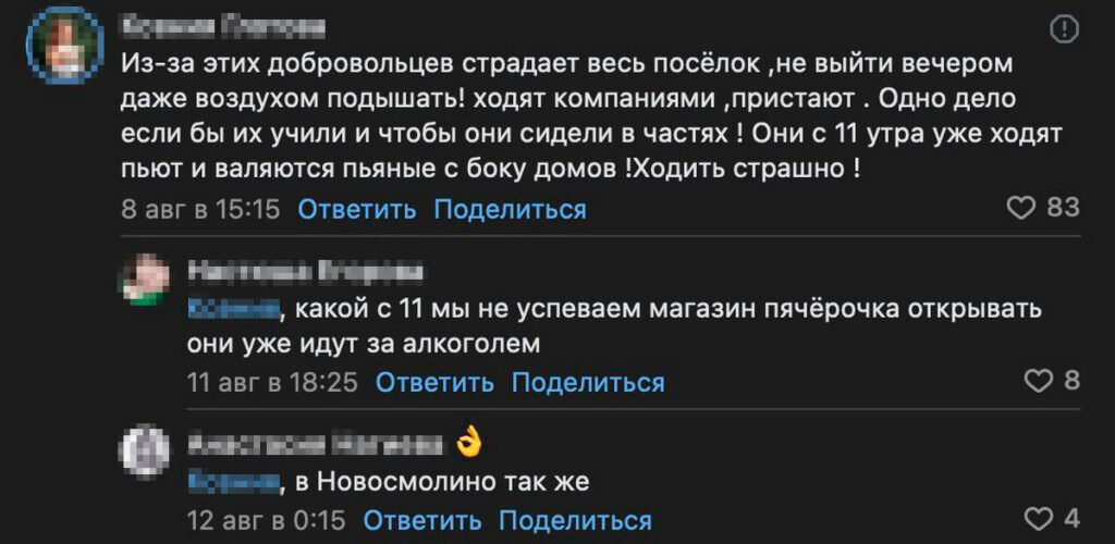 Также пользователи писали, что новые контрактники гуляют по улицам пьяными, пристают к девушкам, провоцируют драки. Из-за этого многие боятся выходить на улицу по вечерам.