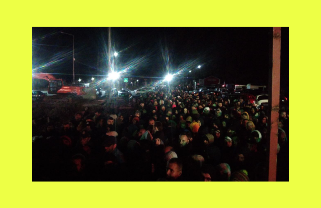 Утром 27 сентября, по словам Евгения, к пробке подъехала колонна машин с казахскими номерами. В чате писали, что «они едут с ножами и кастетами».