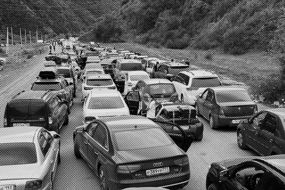 Руслан рассказывает, что, проехав пять-шесть километров от Владикавказа в сторону Верхнего Ларса, увидел огромную пробку. В ней были «тысячи машин», и водители говорили, что стоят там уже по четыре-пять суток.