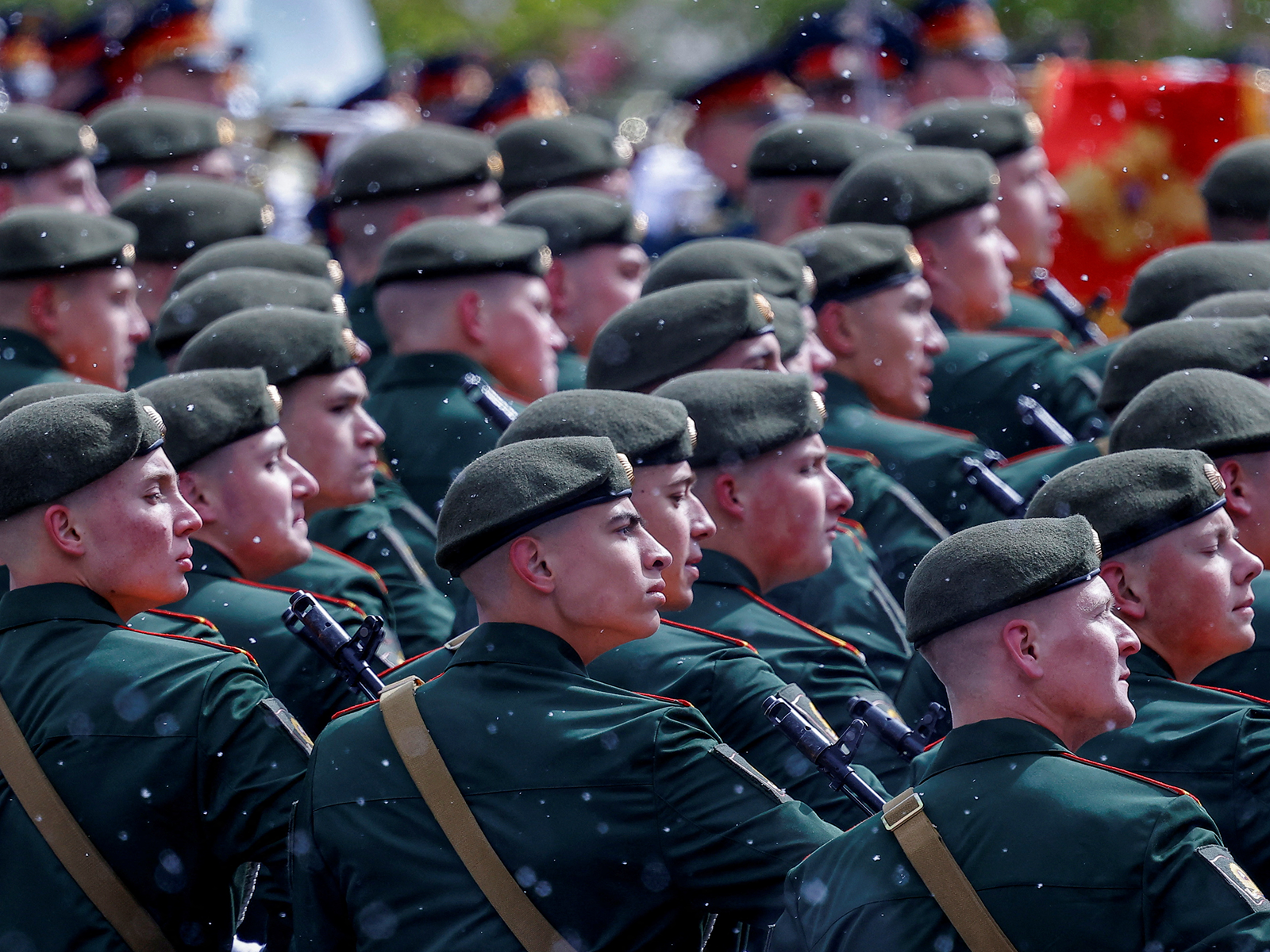 Фото: Российские военные маршируют во время парада в Москве, Россия, 9 мая 2024 года. (REUTERS/Максим Шеметов)