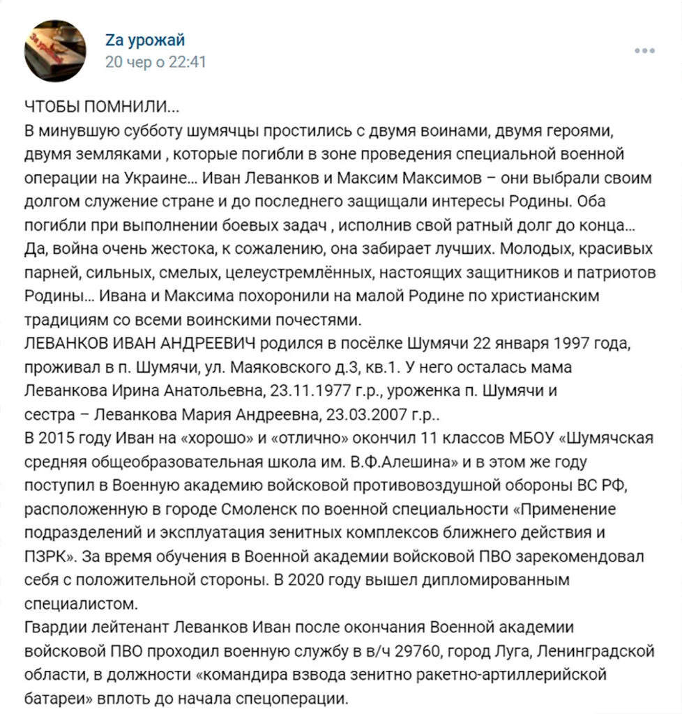 Судя по этим публикациям, с начала «спецоперации» в регионе похоронили 14 погибших, включая Ивана Леванкова. О каждом из них подробно рассказали местные издания и паблики.