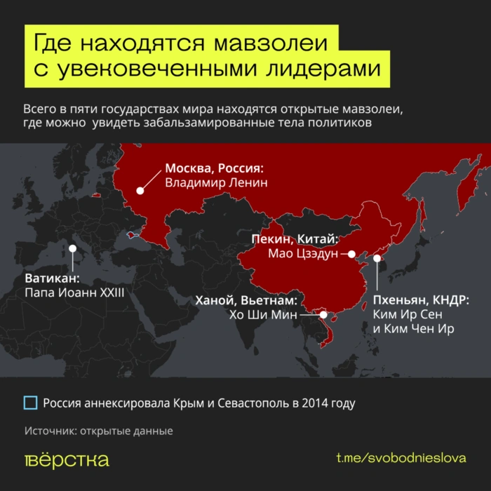 Где находятся открытыв мавзолеи с забальзамированными телами лидеров