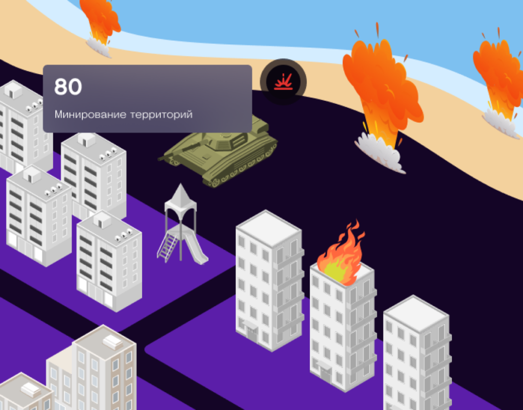 На сегодня больше всего свидетельств собрано об уничтожении или повреждении имущества украинских граждан — 3170 сообщений. Второе по частоте упоминаний — нападение на гражданские объекты. Движение задокументировало 2395 таких случаев.