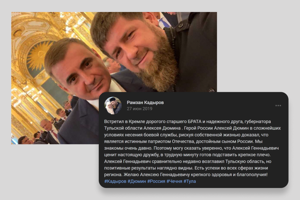 «Вёрстка» пыталась связаться с пресс-секретарём Алексея Дюмина Ольгой Кирюниной, но она не ответила на телефонные звонки и сообщение в мессенджере. Пресс-секретарь Кадырова также не ответил на запросы «Вёрстки».