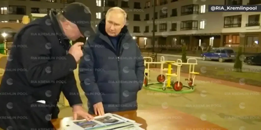 ЖК показали на фотографии и видеозаписях в телеграм-канале RIA Kremlinpool. На детской площадке этого комплекса Путин даже якобы пообщался с местными жителями. Фотографии этого же ЖК можно найти в интернете, например ещё в октябре СМИ писали, что комплекс был сдан в эксплуатацию.