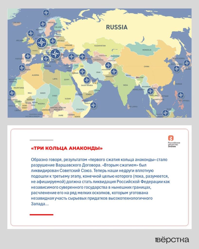 Помимо чисто военных методов оппоненты противодействуют России и более хитрым образом — через экономическую войну по плану «Анаконда». И «змея», уже успешно заплела России два удушающих кольца — сначала развалив Варшавский блок, а затем СССР. И сейчас пытается затянуть последнее — третье кольцо, чтобы РФ в нынешних границах перестала существовать. Доказательств всему этому Вайц приводит минимум. К примеру, с планом «Анаконда» он ссылается на действия руководства армии «северян» против «конфедератов» во время гражданской войны в США, завершившейся в 1865 году.