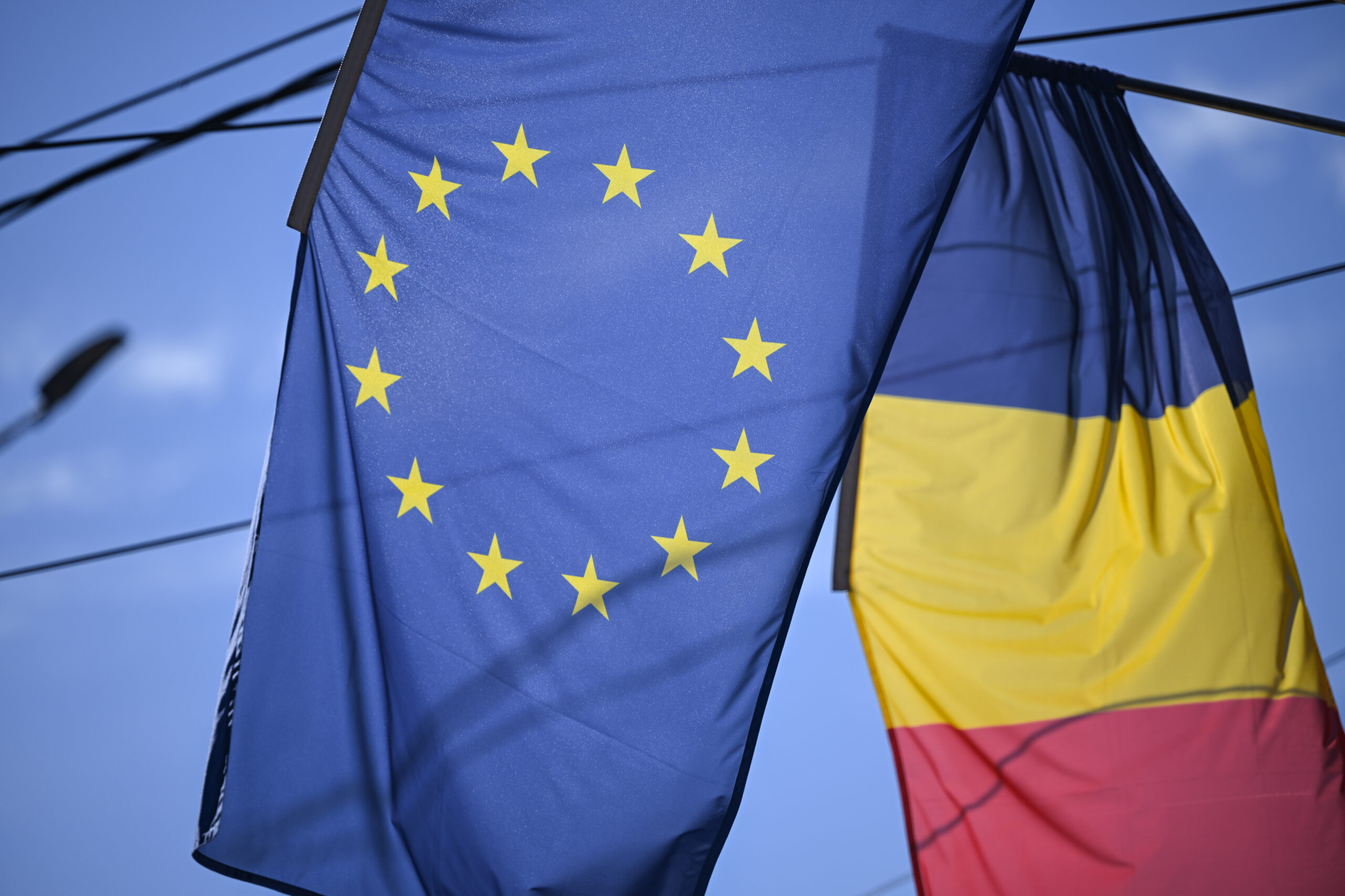 Фото: Румынский и европейский флаги в преддверии парламентских выборов, Кишинёв, 26 сентября 2025 года. STR via Reuters Connect
