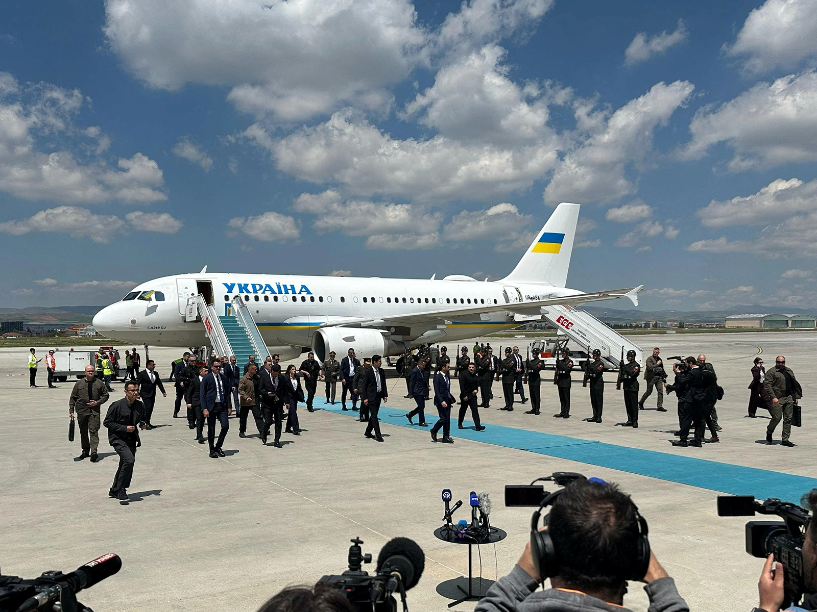 Фото: Президент Украины Владимир Зеленский и украинская делегация переговорщиков в аэропорту Эсенбога в Анкаре, Турция, 15 мая 2025 года. REUTERS/Huseyin Hayatsever