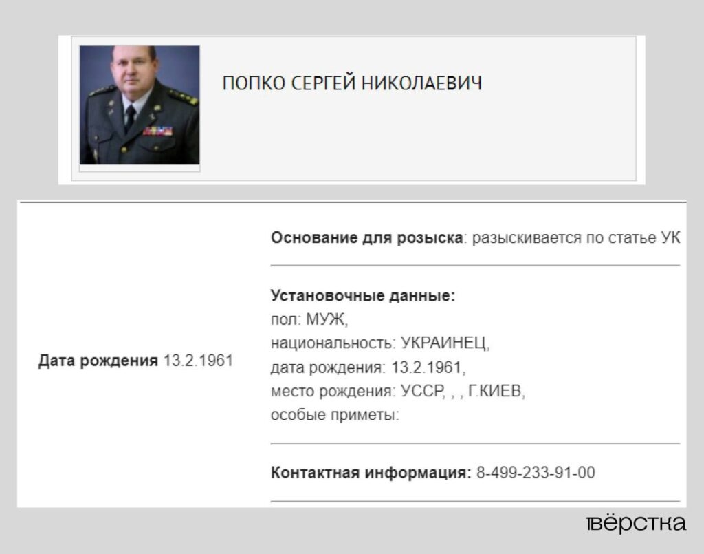 Бывший командующий сухопутными войсками Украины, а ныне глава Киевской городской военной администрации Сергей Попко объявлен в России в федеральный розыск, соответствующую информацию «Вёрстка» обнаружила в базе МВД.