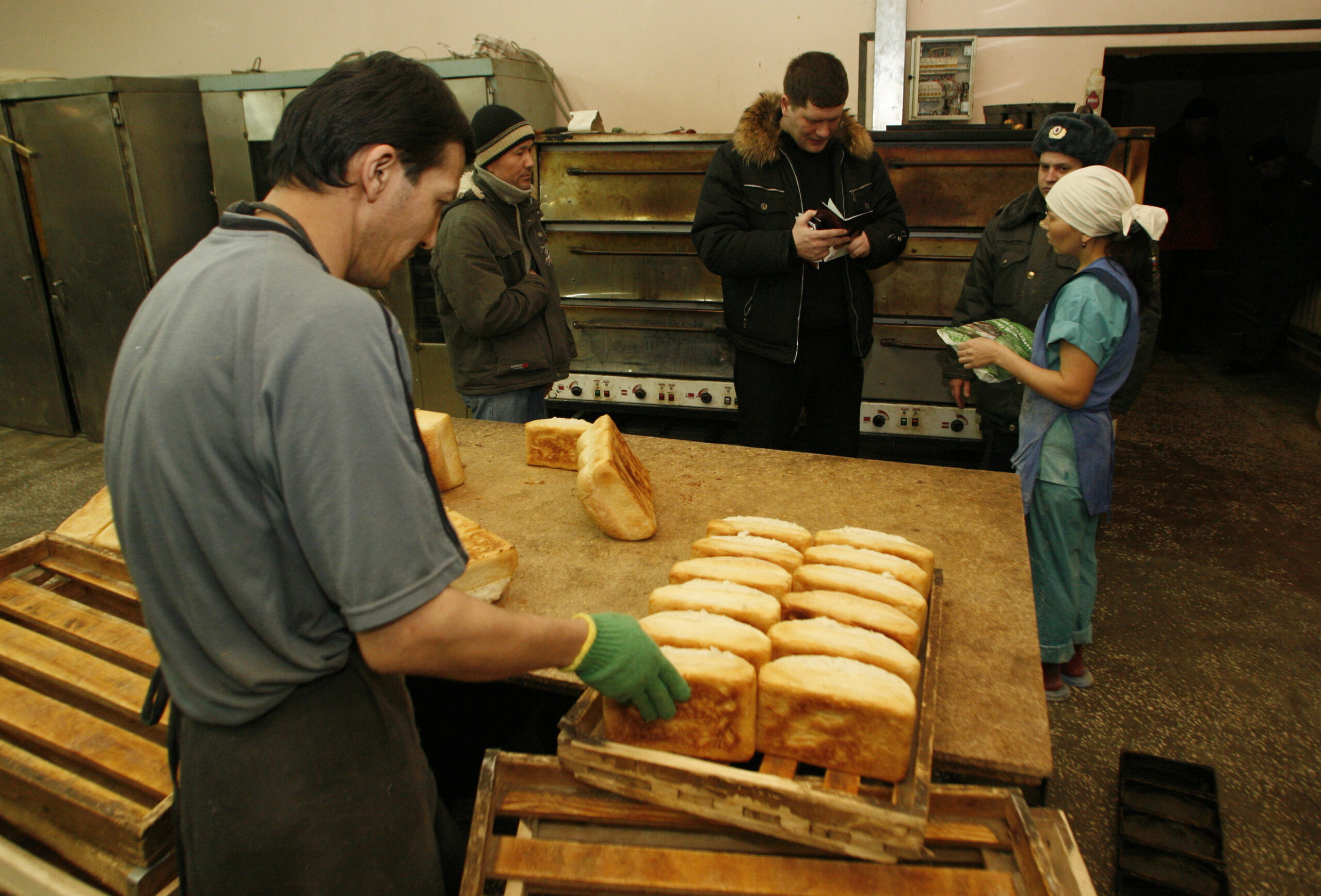 Фото: Полиция проверяет документы у мигрантов в одной из пекарен Красноярска. REUTERS/Ilya Naymushin