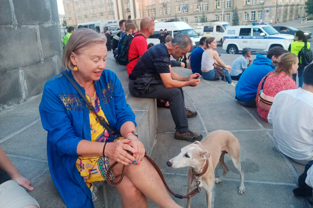 Среди пришедших поддержать политика оказалась и Галина Брандт — известный театральный критик, доктор философских наук. Она пришла с собакой по кличке Инок. «Евгений держался с таким достоинством, когда его задерживали. Вёл себя интеллигентно и спокойно. Зачем вообще нужно было к нему так вламываться?» — возмущается она.