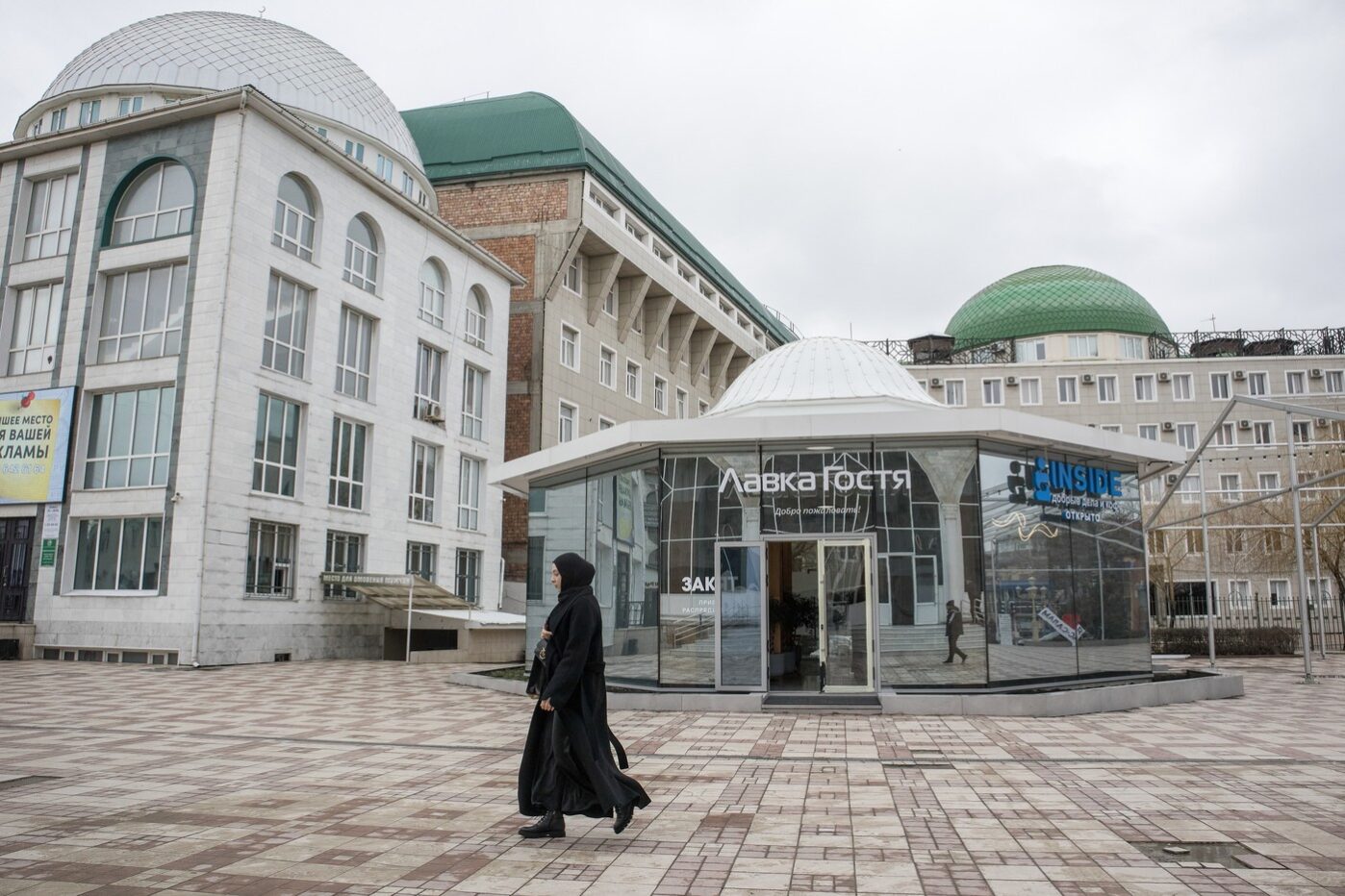 Женщина идёт по площади в центре Махачкалы, 18 февраля 2024 года. Фото: Ivan Vysochinsky/ TASS/ Profimedia.